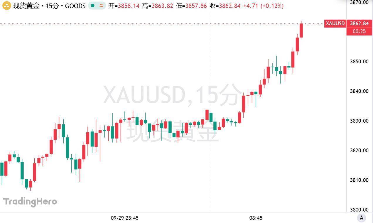 周一,迫在眉睫的美国政府潜在关门危机震动市场并导致美元走低,黄金再度刷新历史新高至3830美元上方。周二亚盘,黄金涨势不停,并一度冲上3860美元,本周头两个交易日已涨超100美元。