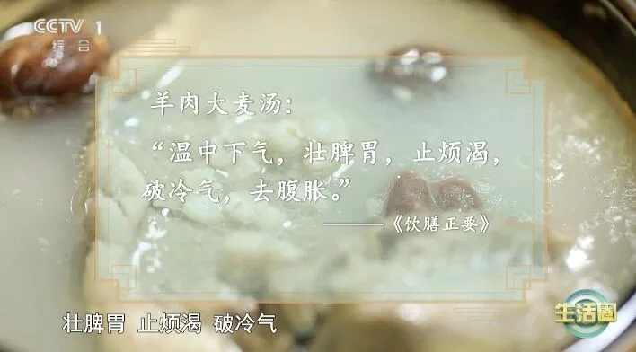秋冬时节,阴长阳消,此时寒凉之气易损伤人体阳气中玉束哈,容易出现腹痛、腹泻等腹部不适症状。当人体阳气不能温养四肢,就会出现手脚冰凉的表现。此时可以食用一道帮助温补阳气、改善不适的汤品——羊肉大麦汤。